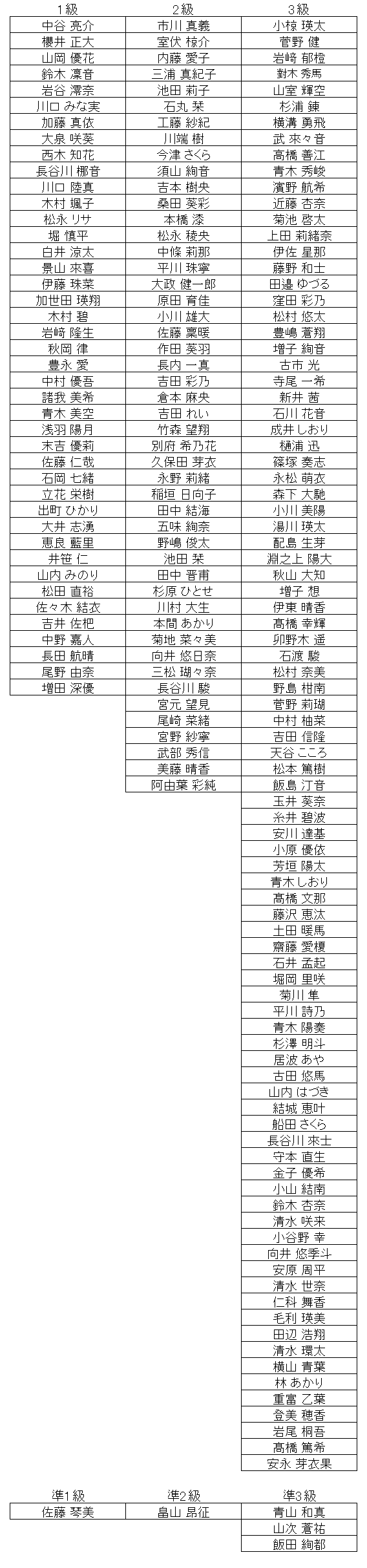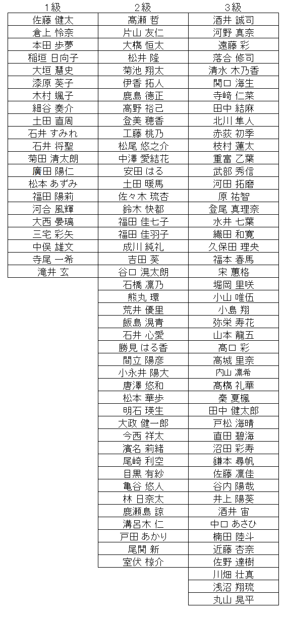 段位、1級、2級、3級のみの速報です。 10段は本部審査のため遅れることがあります。