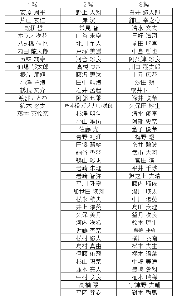 段位、1級、2級、3級のみの速報です。 10段は本部審査のため遅れることがあります。
