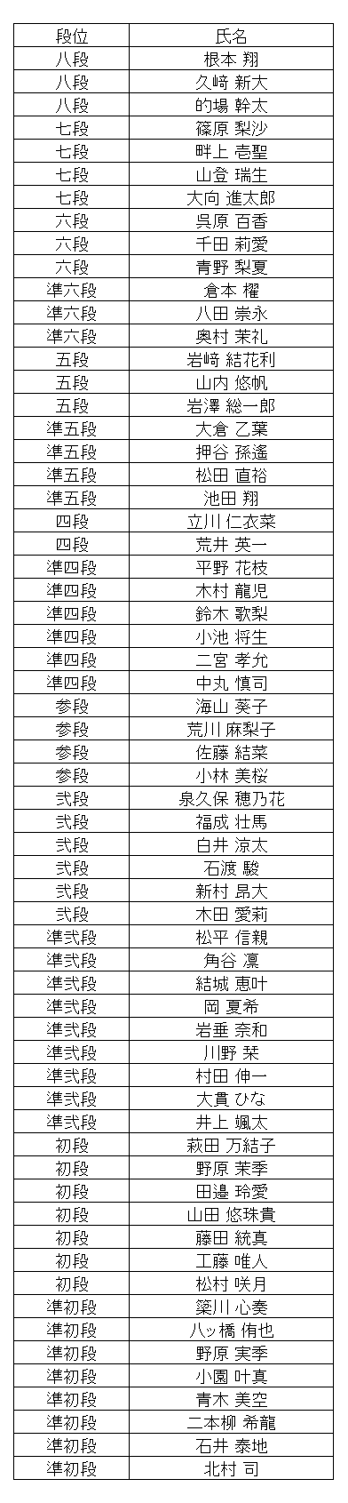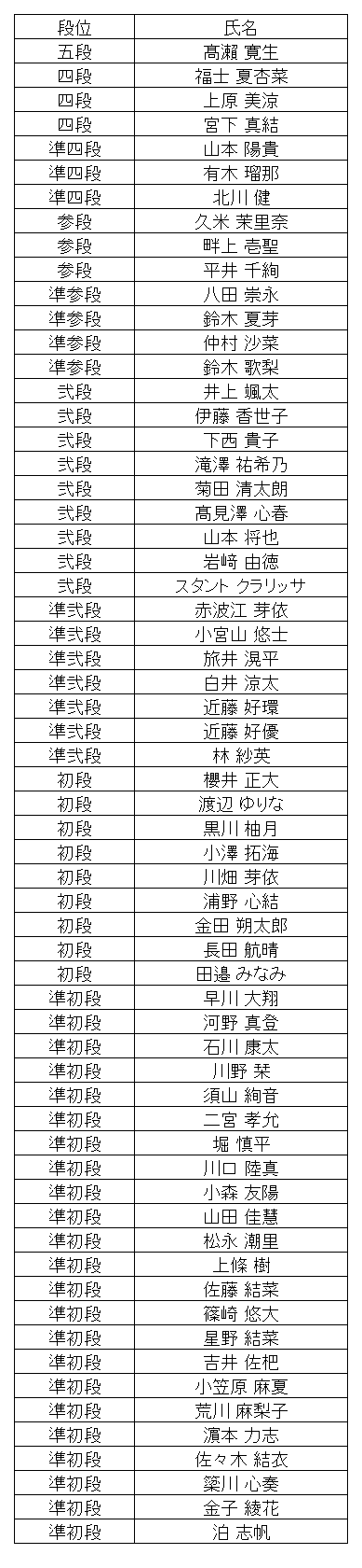 段位、1級、2級、3級のみの速報です。 10段は本部審査のため遅れることがあります。